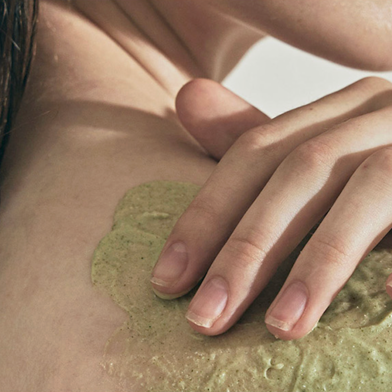 Applicare sulla pelle umida sotto la doccia. Massaggiare con movimenti circolari, insistendo su gomiti, ginocchia e zone più ruvide. Risciacquare con acqua tiepida. Utilizzare 2–3 volte alla settimana. Evitare in caso di pelle irritata o lesionata.